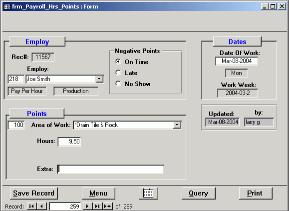 Click the Hours/Points button, and the payroll entry form opens to enter
