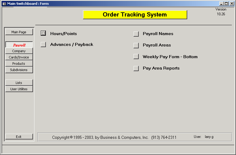 The buttons on the right moves the user to different areas of Payroll.